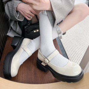 Popular elements: shallow mouth, sloping heel, thick heel, sponge heel, cross tie, buckle, waterproof platform, belt buckle Pattern: Solid color Inner material: microfiber Upper height: low cut Heel shape: Thick sole Sole technology: Adhesive shoes Wearing method: buckle Insole material: PU Style: Mary Jane shoes Shoe toe shape: round toe Shoe upper material: patent leather…